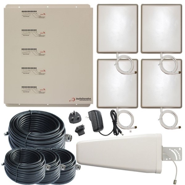 Amplificatore di Segnale StellaHome Pentaband con Antenna Yagi Esterna e Quattro Antenne Interne per Massimizzare la Copertura GSM, UMTS/3G, e LTE/4G in Ambienti fino a 4000mq