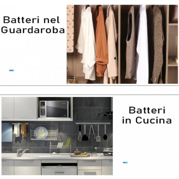 Grazie alla sua azione a 360° è in grado di disinfettare tutto ciò che desiderate, ma non è l'unica sua capacità infatti oltre ad un ampio raggio ha anche: funzionamento con batteria ricaricabile, è semplice e rapido da usare piochè si accende con una pressione di 5 secondi e si attiva dopo solo 30 secondi, inoltre è dotato di spegnimento automatico dopo 20 minuti garantendo una durata vitale della batteria efficente e sana.