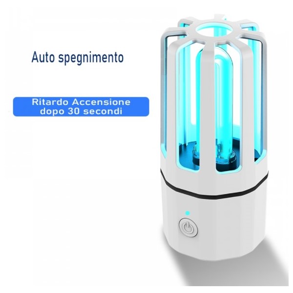 Grazie alla sua azione a 360° è in grado di disinfettare tutto ciò che desiderate, ma non è l'unica sua capacità infatti oltre ad un ampio raggio ha anche: funzionamento con batteria ricaricabile, è semplice e rapido da usare piochè si accende con una pressione di 5 secondi e si attiva dopo solo 30 secondi, inoltre è dotato di spegnimento automatico dopo 20 minuti garantendo una durata vitale della batteria efficente e sana.