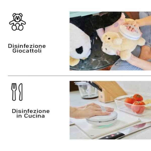 Grazie ai suoi raggi UV battericidi permette l'eliminazione di virus e batteri da superfici come tessuti, portatili e computer, giocattoli di animali, giocattoli per bambini, peluche, tutti gli oggetti in cucina e bagno, insomma tutto ciò che desiderate sterilizzare grazie a questo pratico dispositivo si può fare!