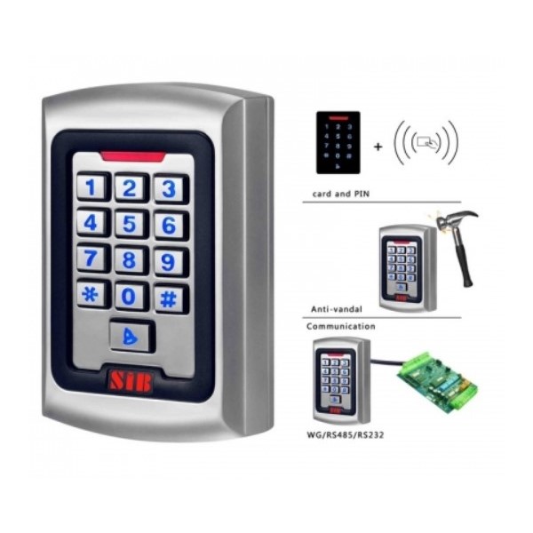 Lettore badge universale in metallo - Lettore badgeuniversale via cavo costruito in metallo per esterni tastiera illuminata chiusura contatto regolabile da 1-99 secondi Puo' essere utilizzato nelle centrali di allarme aggiungendo un relay per rendere stabile il cambio dello stato