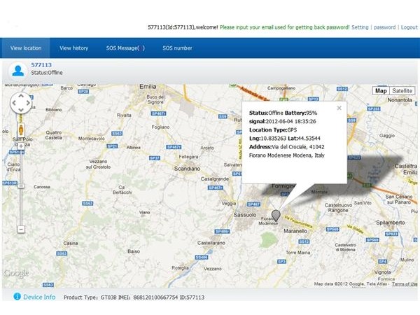 - In alternativa questo è un localizzatore real time, che può essere localizzato e seguito semplicemente collegandovi ad un apposito sito da qualsiasi postazione internet e da qualsiasi pc, tablet, palmare, cellulare, iphone, smartphone.