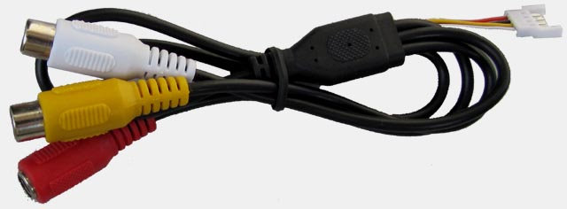 Collegamento PIN1-Red-Black DC5V PIN2 GND PIN3-VIDEO OUT giallo-bianco PIN4 AUDIO OUT