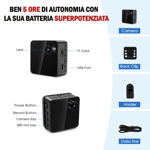 MINI SPYCAM TELECAMERA WIFI INFRAROSSI 4K PROFESSIONALE INVISIBILE