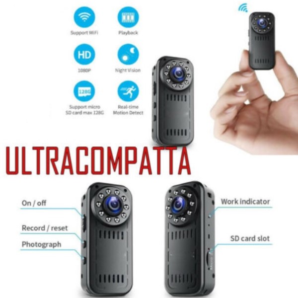 MINI TELECAMERA SPY PROFESSIONALE WIFI INFRAROSSI VISIONE NOTTURNA 128GB