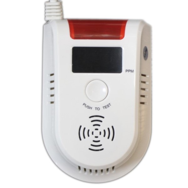 Quando si innesca il rilevatore di gas, andrà in allarme con una sirena interna, invierà un segnale al sistema di allarme e al contempo chiuderà l'uscita relè al suo interno.