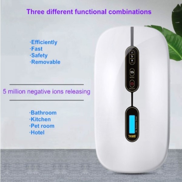 Voltaggio operativo: 5V Potenza: 8W Batteria interna: assente (2000mA opzionale) Disturbo: <30 dB Funzionalità con modalità a scelta: ANION + UV-C + OZONE Concentrazione Anioni: 5000 unità cm2 Concentrazione Ozono: 50~60 mg/ora Modalità operative: 4 Gradualità Area di copertura: 30 Mq Dimensioni: 268mm x 148mm x 60mm Colore: Bianco, (Blu e Rosso opzionali) Dimensioni: 148*60*268mm Ingresso: 5V Usb Ozono:120mg/L UVC: 2 watts / 254nm / 24mA Anioni: 10 milioni Peso: 1,7kg Funzione bottoni_ ON/OFF UVC/ANIONI/OZONO