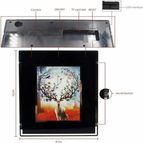 cornice portafoto( foto sostituibile) per la prima volta di dimensioni reali e molto importanti, La telecamera è perfettamente