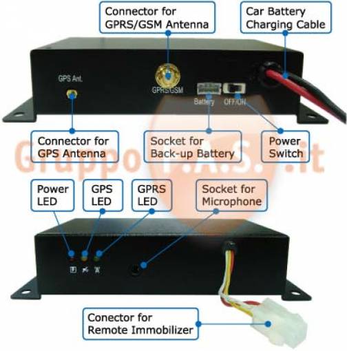 * Funzione immobilizzatore: attraverso un sms potete interrompere il movimento del mezzo e spegnerlo in caso di furto.